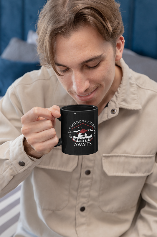 Great Canoe with Bear Adventure Awaits [Let the Thrill begin!] Black Mug [11oz]