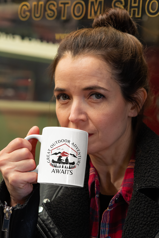 Great Canoe with Bear Adventure Awaits [Let the Thrill begin!] White Mug [11oz]