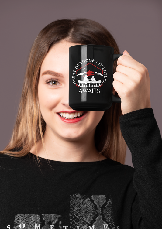 Great Canoe with Bear Adventure Awaits [Let the Thrill begin!] Black Mug [15oz]