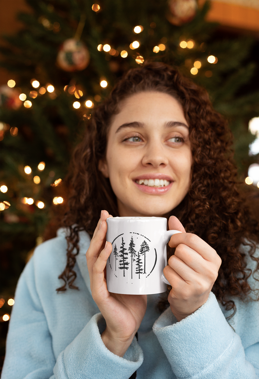 Fir Trees In Circle Simple and Elegant White Mug [11oz]