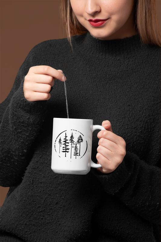 Fir Trees In Circle Simple and Elegant White Mug [15oz]