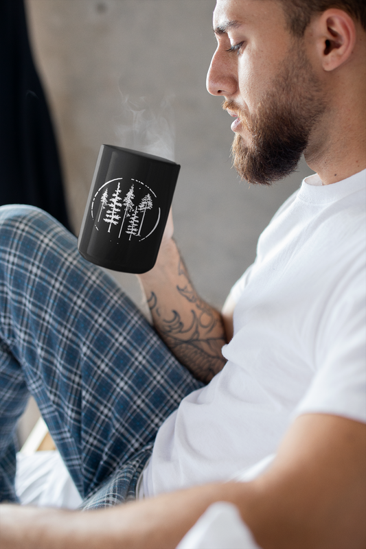 Fir Trees In Circle Simple and Elegant Black Mug [11oz]